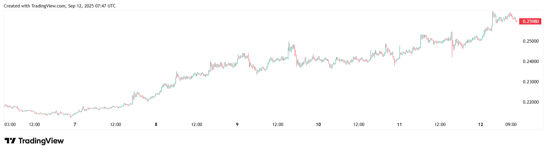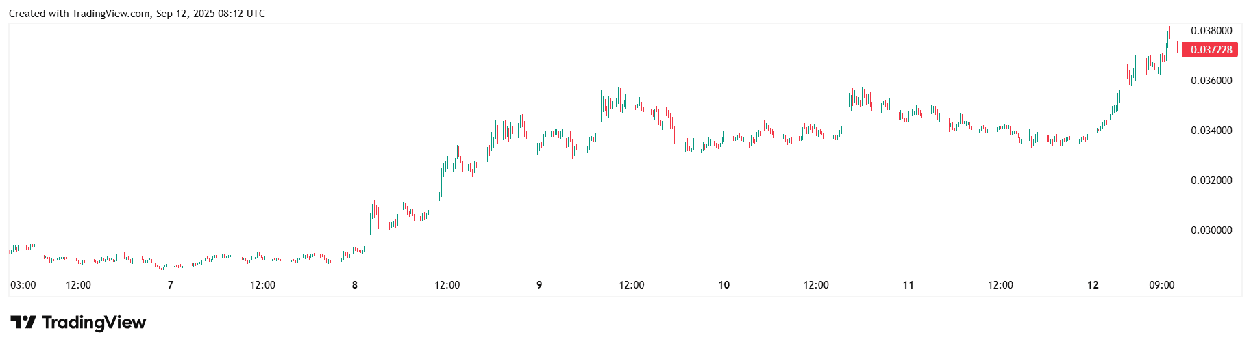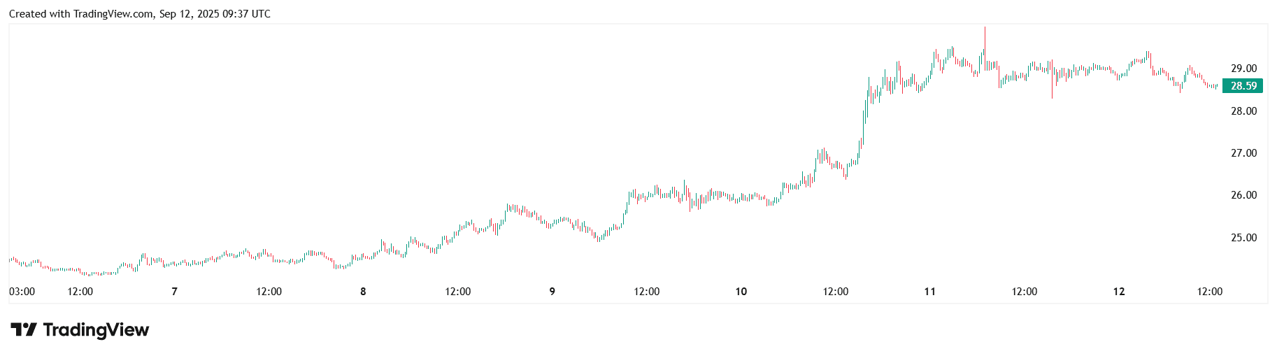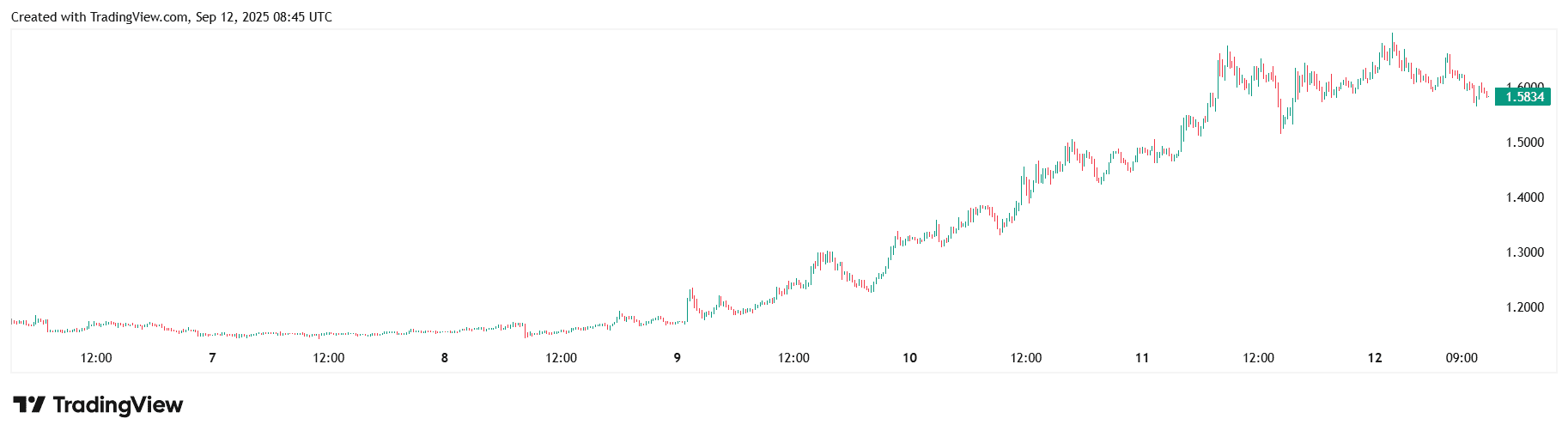 За последнюю неделю он вырос на более чем 36%, подобравшись к максимуму, установленному при начале торгов активом.