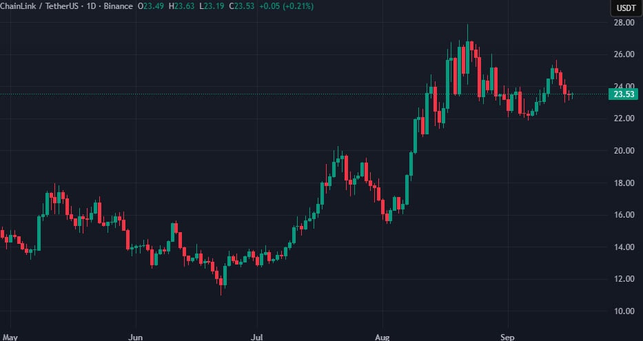 Отметим, на момент написания монета Chainlink (LINK) торгуется вблизи отметки в $23,50: