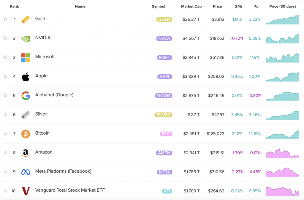 Топ-10 крупнейших активов мира. Источник: Infinite Market Cap