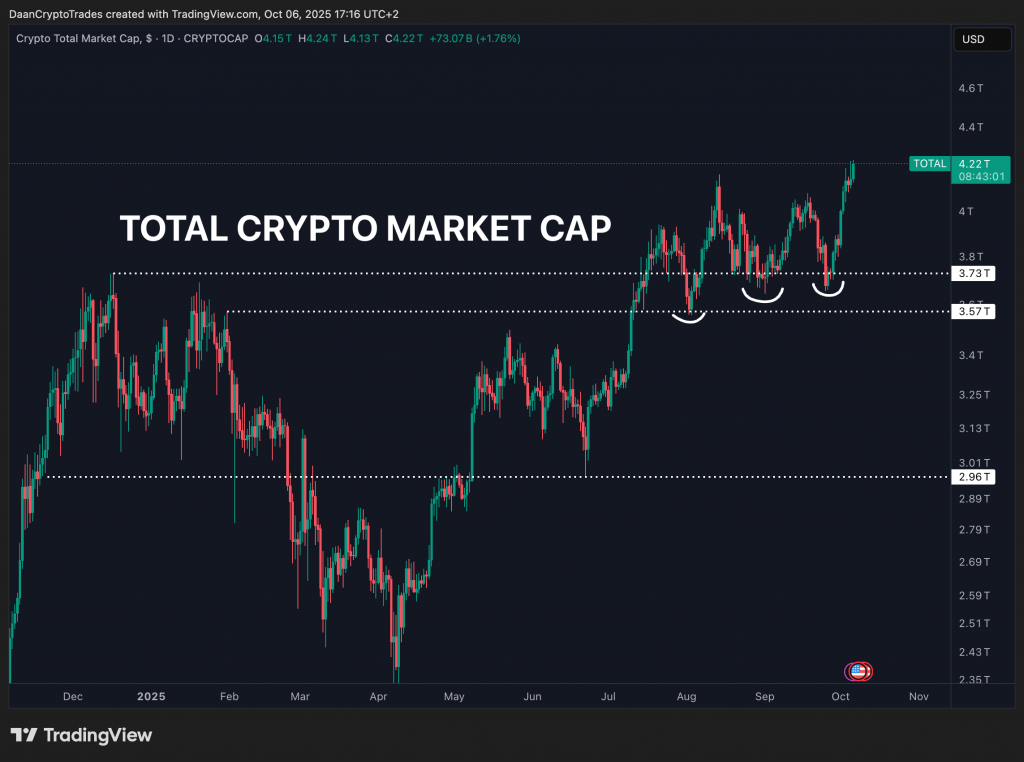 1-дневный график общей капитализации рынка криптовалют. Аналитика: Daan Crypto Trades