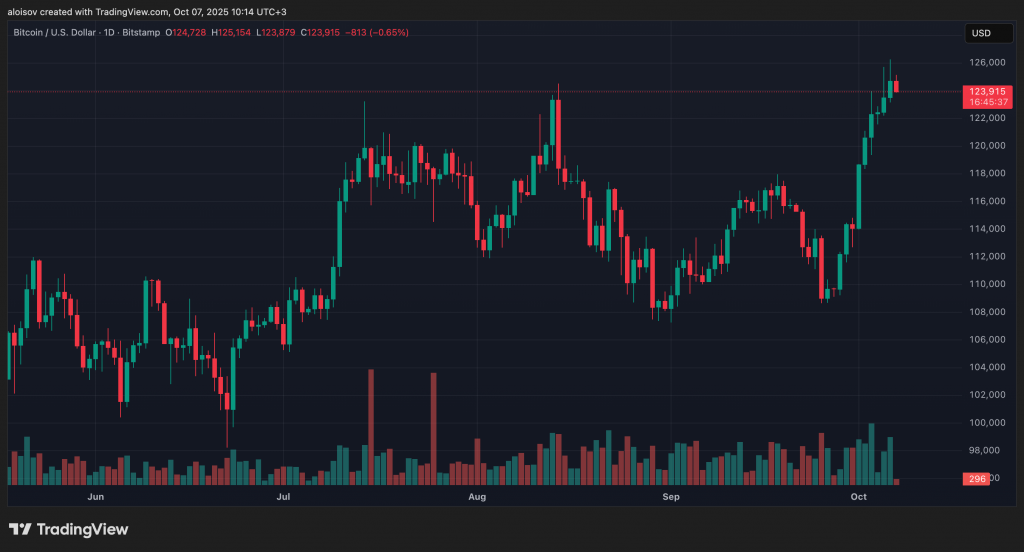 Биткоин обновил исторический максимум, достигнув на бирже Bitstamp $126 272. На момент подготовки материала цена составляла $123 015. Ethereum при этом поднялся до $4 735.