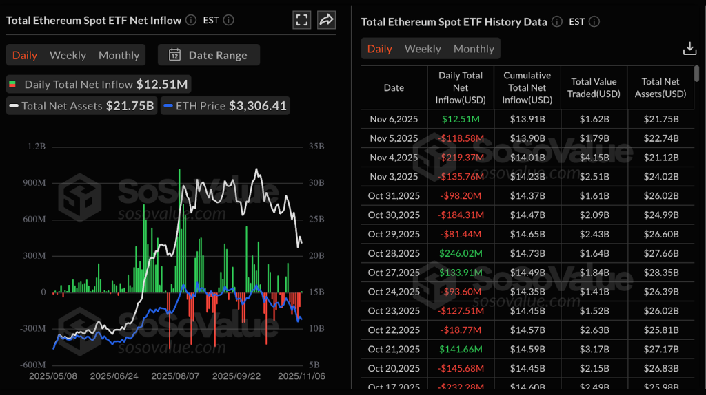 Динамика оттоков и притоков средств в спотовые Ethereum-ETF. Источник: SoSoValue.