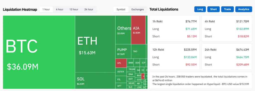 На фоне коррекции за прошедший час ликвидированы позиции на $76,8 млн. Показатель за 24 часа достиг $674,3 млн.