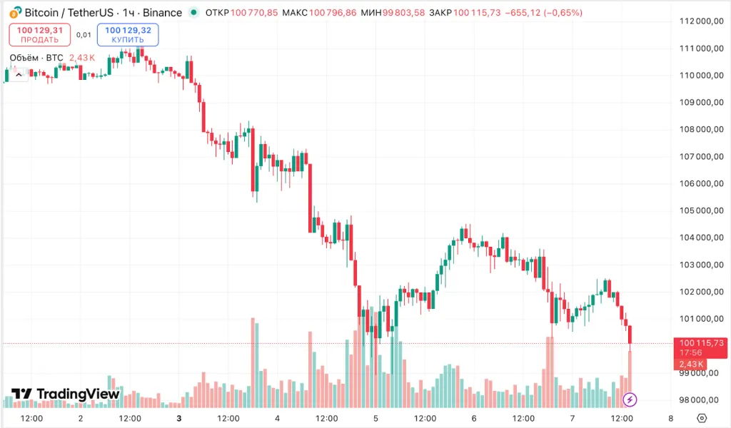 7 ноября цена первой криптовалюты опускался ниже психологической отметки $100 000 — до ~$99 900.
