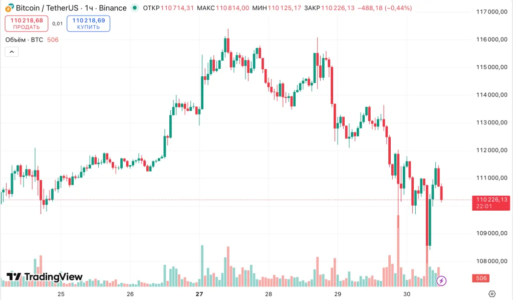 К моменту написания цифровое золото скорректировалось к ~$110 200.