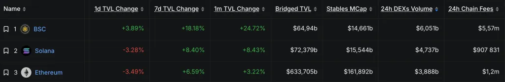 На момент написания 19 из 20 трендовых токенов на агрегаторе DEX Screener относятся к экосистеме BNB Chain.