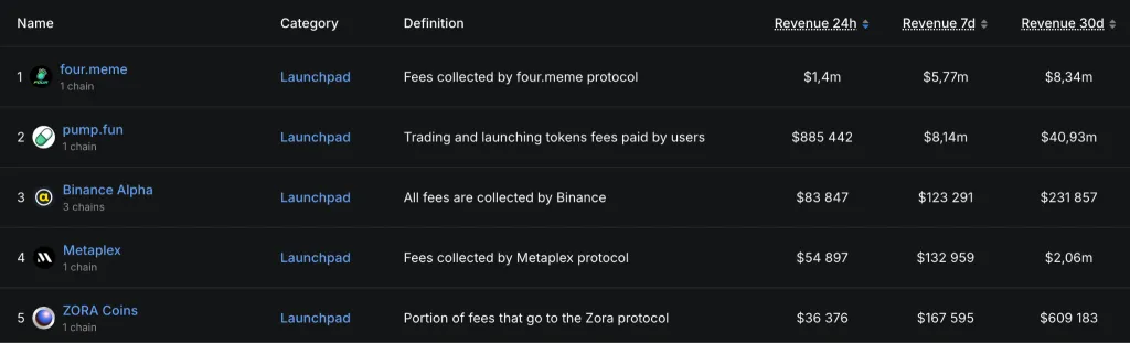 На фоне всплеска интереса к экосистеме Four.meme уже превзошла Pump.fun на Solana по доходам от комиссий.