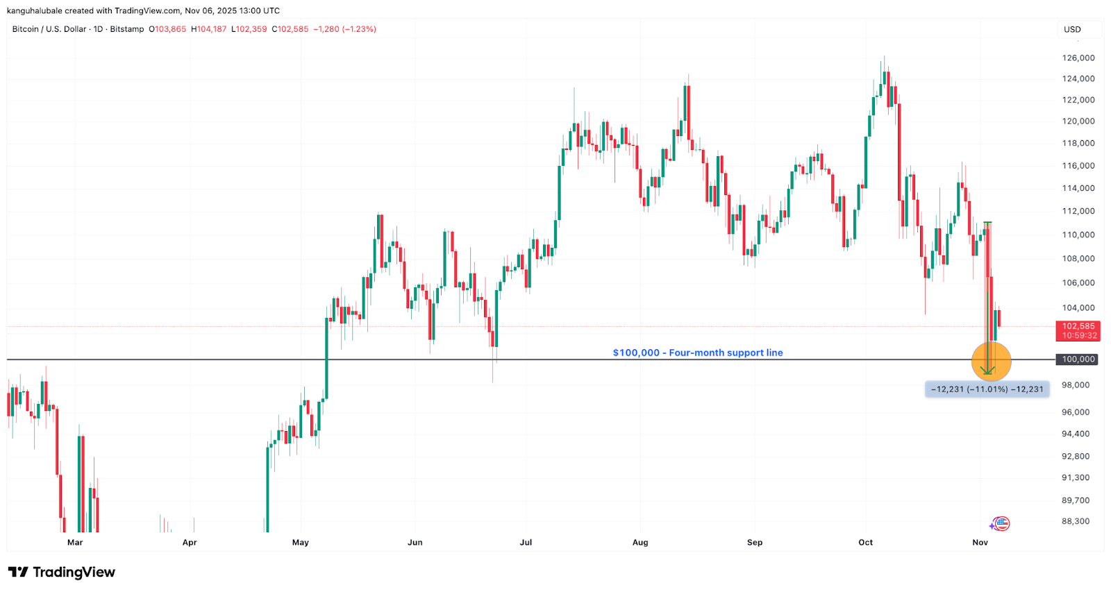 4 ноября краткосрочные держатели с нереализованными убытками начали капитулировать, когда первая криптовалюта упала ниже $100 000.